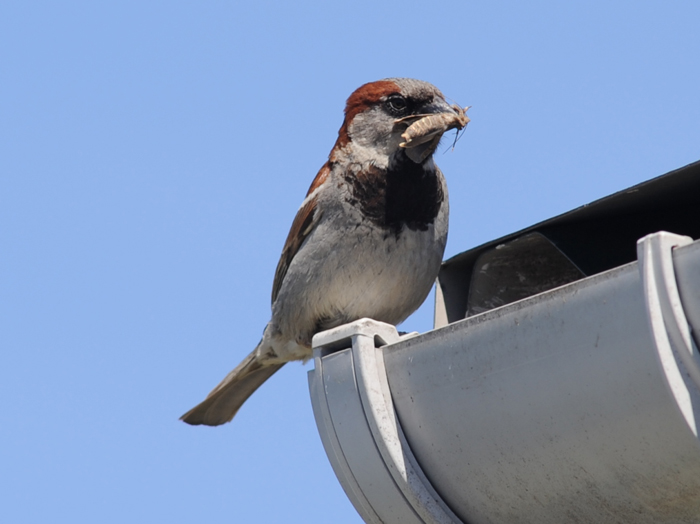 House sparrows are restricted to Stanley and some settlements where they nests in roof or wall cavities and sometimes trees. They are dependent on human settlement for survival.