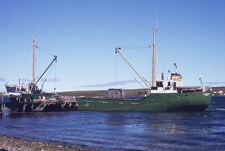 MV Forrest Forrest who replaced Philomel was larger, 86 ft long with a 22 ft beam, so capable of carrying larger cargoes. She was launched in May 1967 and arrived in the islands on 8th November to be registered in Port Stanley on 1st December 1968. She was named for Dr W. Forrest McWhan, Minister of the islands’ Tabernacle (United Free Church) 1934- 1965. |