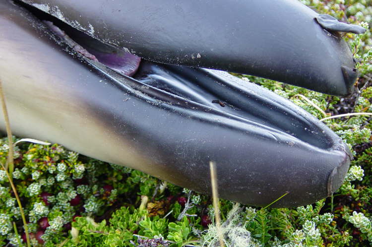 The Strap-toothed whale in the photographs on this webpage is a female stranded in the Falkland Islands (West Falklands) in 2004.